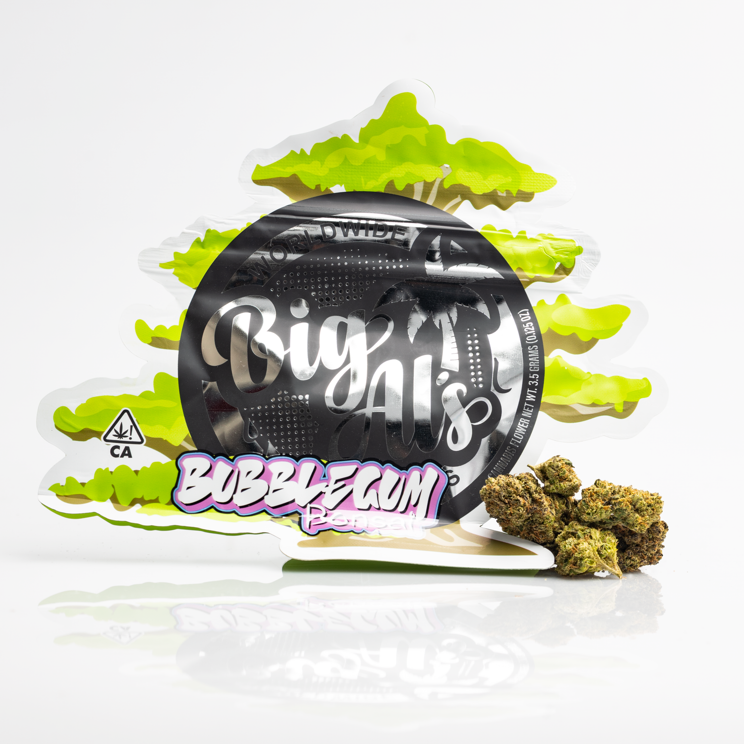 This Big Al’s staple is pure candy with big overtones of Bazooka Joe. Lime green flowers with slight colorful hues burn super resinous with a sweet taste that lasts all the way through the joint.